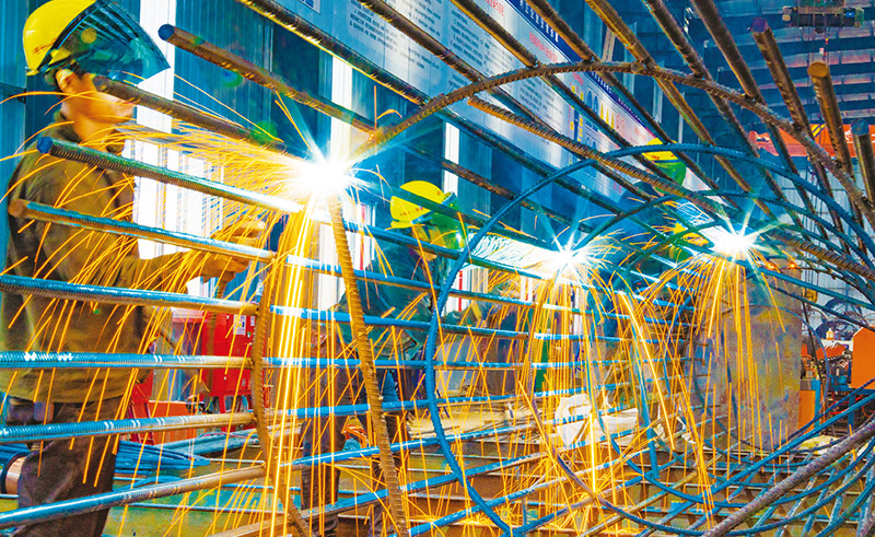 公路特别是高速公路是现代化基础设施体系的重要组成部分,是经济社会发展的重要支撑。图为2023年9月14日,湖北武汉新港高速公路双柳长江大桥施工现场,建设者正在进行钢筋笼焊接施工。 人民图片 金伟/摄