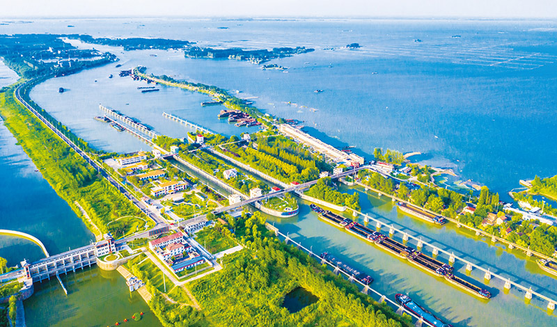 交通是经济的脉络和文明的纽带。图为2023年8月20日,货船行驶在京杭大运河江苏宿迁皂河段。 人民图片 徐瑞/摄