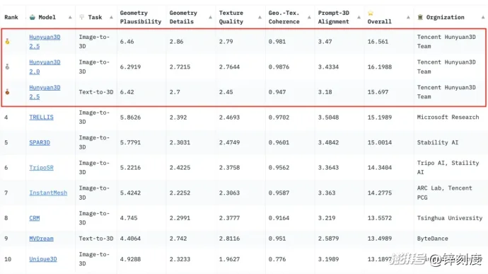 其中,混元3D v2.5模型的成绩,可圈可点。