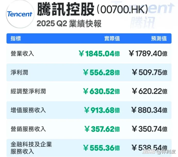 受益于AI驱动,腾讯的增值服务、营销服务、金融科技及企业服务三大主业均取得可持续增长,并全部超出市场预期。