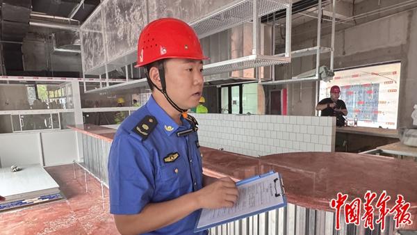 乐发装饰有限公司项目经理胡春勇正带领施工队,在这里负责一处170平方米西式烘焙店的装修。对他而言,这只是个“小活”,每个工种往往两三天就完工离场,人员流动性大。“天热时,工人不爱戴安全帽,我得天天盯着说。”他坦言,因工程小,安全教育和防护措施难免“打折扣”。