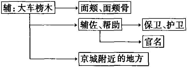 ③由“大车榜木”又引申为“辅佐”、“帮助”。动词。《孟子·梁惠王上》:“愿夫子辅吾志(希望先生帮助我达到自己的理想),明以教我(明确地教侮我)。”《孙子·谋攻》:“夫将者国之辅也(将帅,是国君的辅佐)。辅周(辅佐得周密),则国必强(国家就强盛);辅隙(辅佐有疏漏),则国必弱(国家就必然衰弱)。”现如:辅导;辅助;相辅而行。