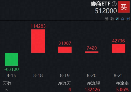 值得一提的是,上交所数据显示,券商ETF(512000)近日获资金大举涌入,其连续4日吸金合计超19亿元,最新基金规模超285亿元,年内日均成交额8.79亿元,为A股规模、流动性居前的顶流券业ETF。