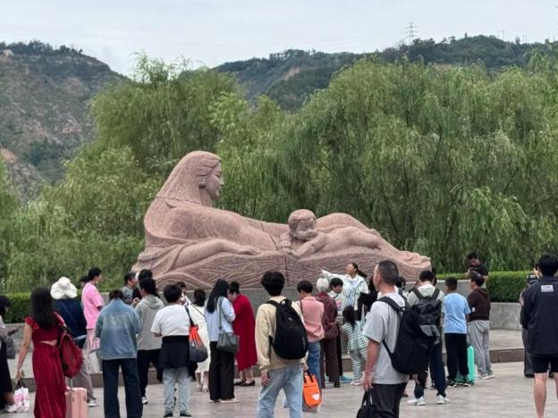坐落于兰州市黄河南岸滨河路中段的黄河母亲塑像,由雕塑家何鄂于1986年创作的城市雕塑,坐落于兰州市黄河南岸滨河路中段。以红色花岗岩为材质,由基座与雕像组成,总高2.6米、长6米、宽2.2米,重达40余吨。雕塑以“母亲”怀抱“婴儿”的构图,象征黄河哺育中华民族的永恒主题。(化冰供图)