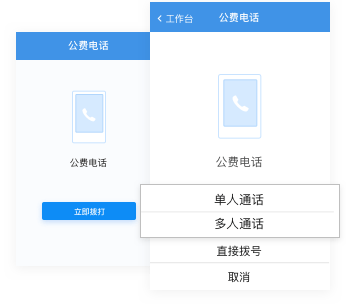 在底部栏的工作台中,选择公费电话,点击立即拨打即可。