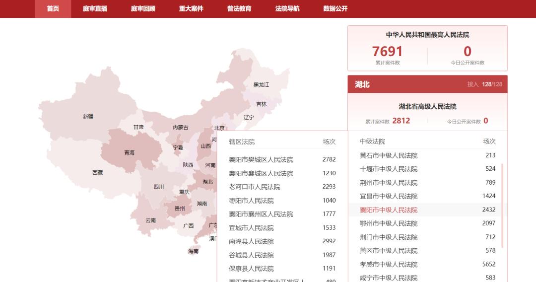 截止到2024年9月25日10时,全国法院累计公开案件22903216件,最高人民法院累计公开案件7691件。全省128家法院累计公开案件301286件,谷城法院累计公开案件1635件。