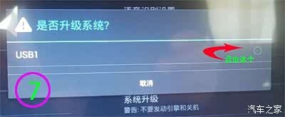 2、插入有刷机文件的U盘(一般插在常用来听歌的USB口就可),点击“设置”——“通用设置”——“系统升级”(注意不是MCU升级喔),一般情况下,会弹出USB选择对话框,如下图: