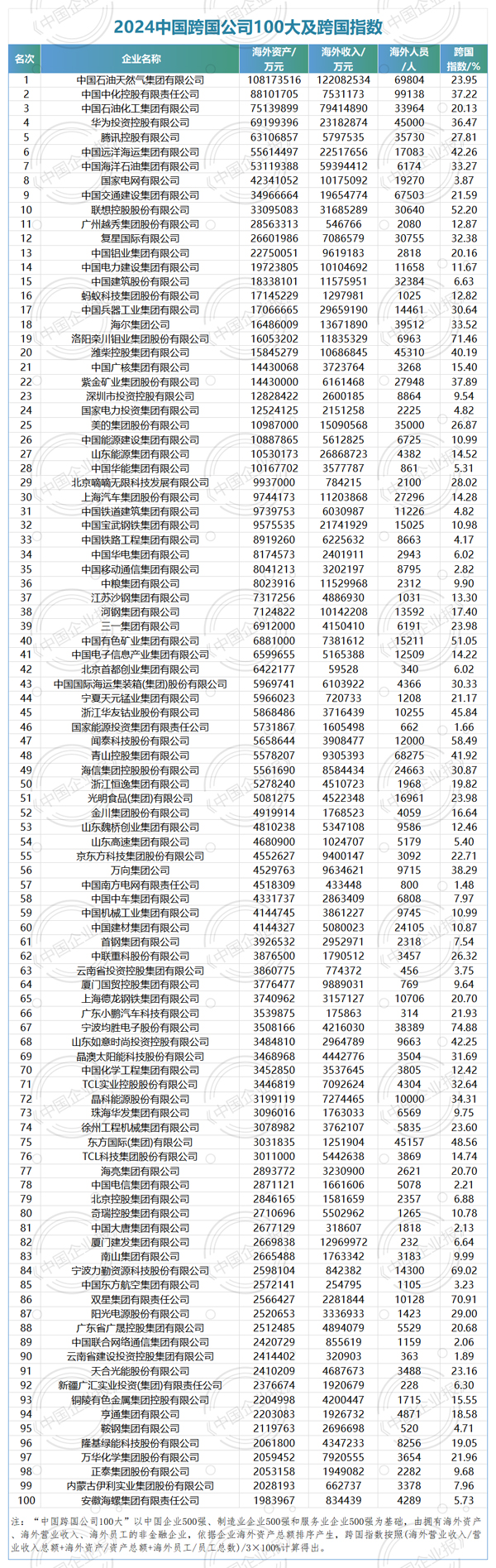 日前,中国企业联合会、中国企业家协会连续第14年推出“中国跨国公司100大及跨国指数分析报告”。