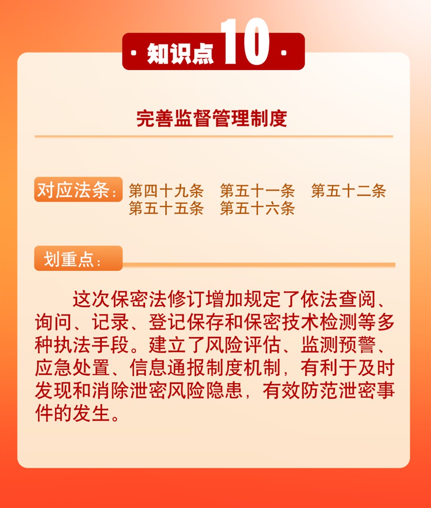 随着保密法的修订颁布,学习贯彻新保密法已成为保密战线当前和今后一个时期的重要任务。今天,让我们一起来学习保密法10个新的知识点,帮助大家进一步学习掌握新法内容,不断提高依法管理国家秘密的能力和水平。