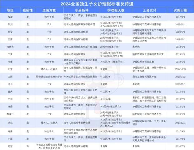 在地方性政策中,一些地方作出类似的规定:享受独生子女父母待遇的老年人,患病住院治疗期间,用人单位应当支持其子女进行护理照料,并给予每年累计5—20天的护理时间。