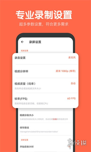 3、个性化参数设置面板,支持实时调整分辨率、帧率等专业录制参数。