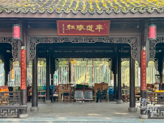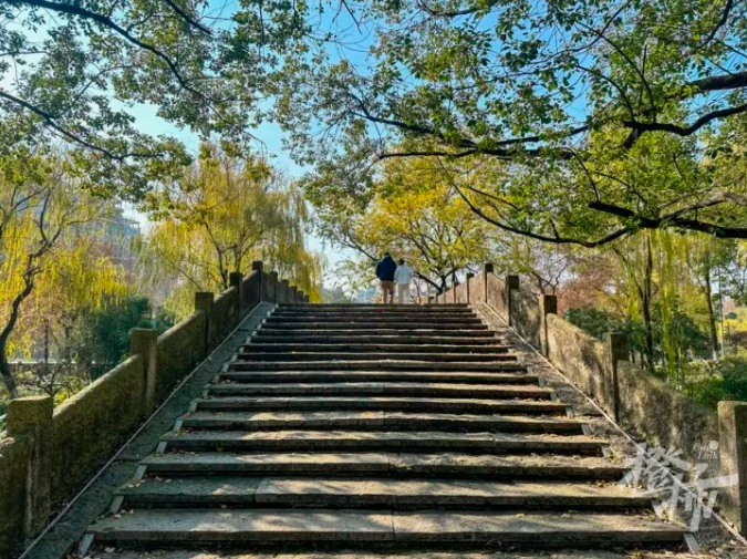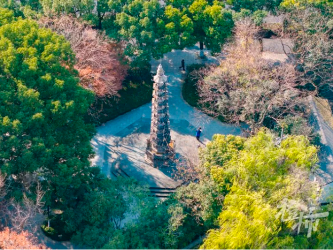 就在这片红杉林附近,还有湖墅八景之一半道春红。