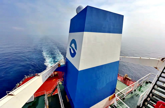 船舶大气污染物排放控制区已执行更严格标准。图为一艘远洋货船的烟囱。摄影/章轲