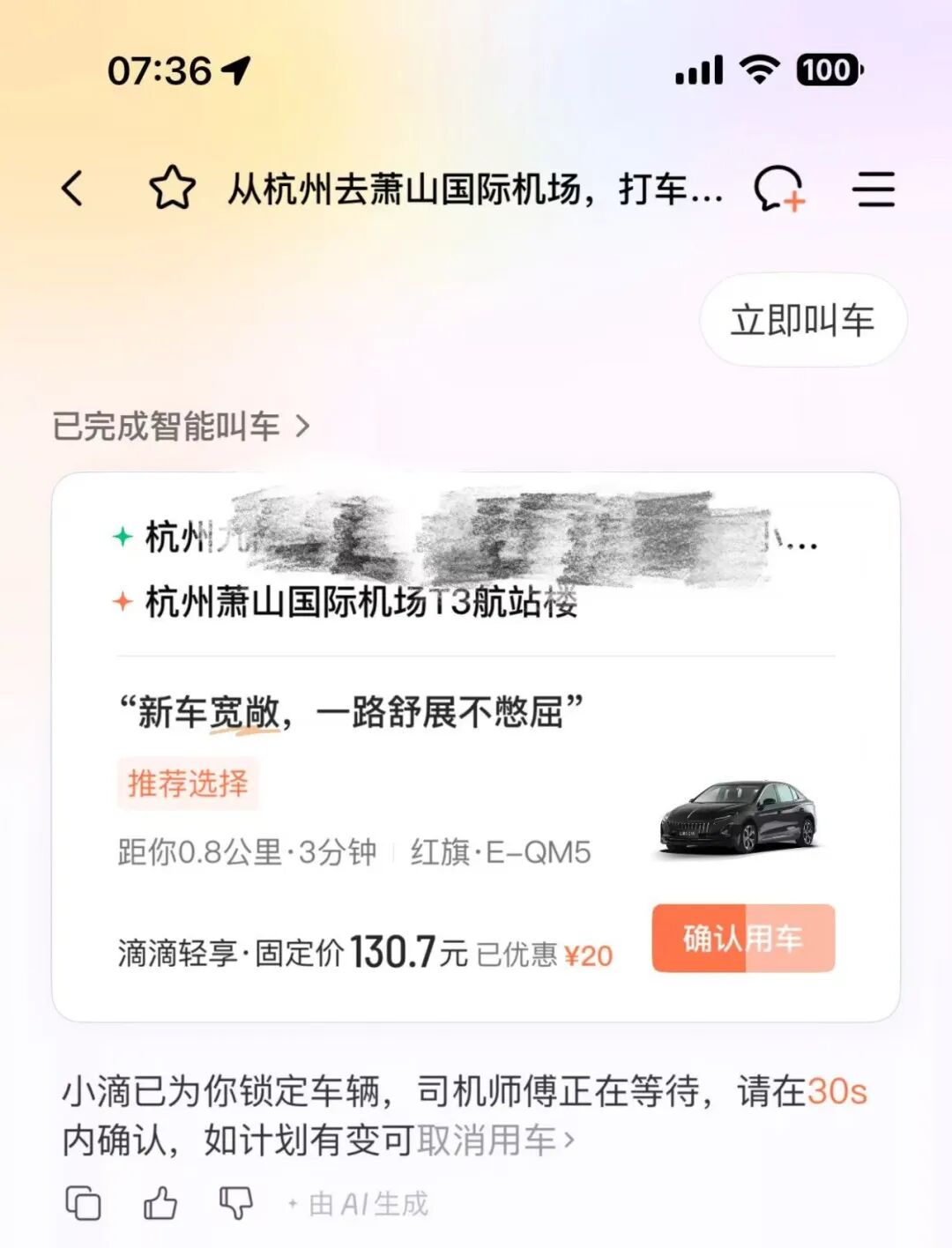 说句实话,这是我目前体验最简洁和丝滑的 AI 出行助手,当然也可以叫 AI 打车助手了。