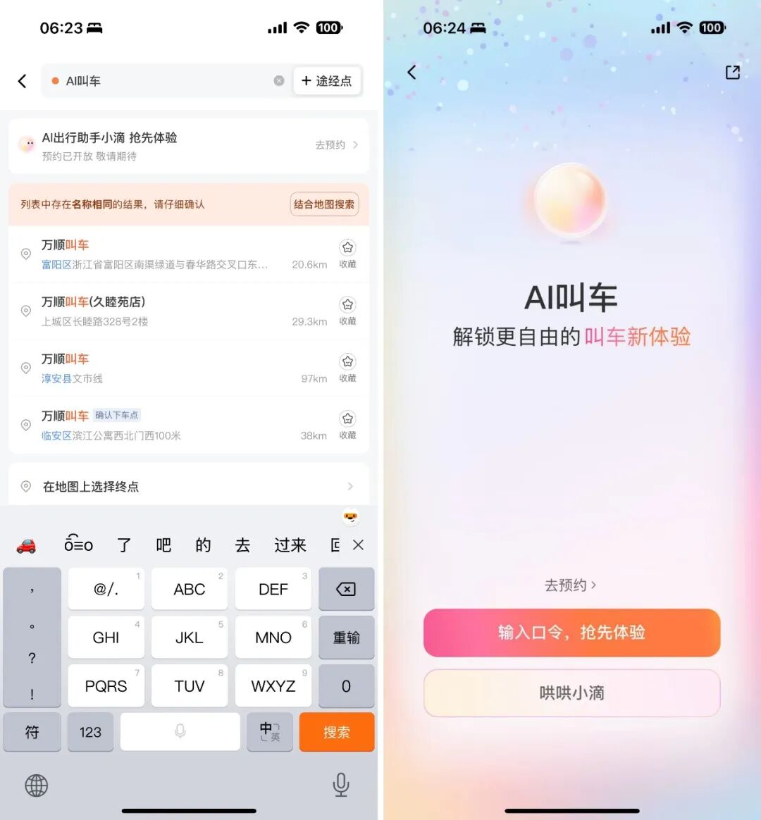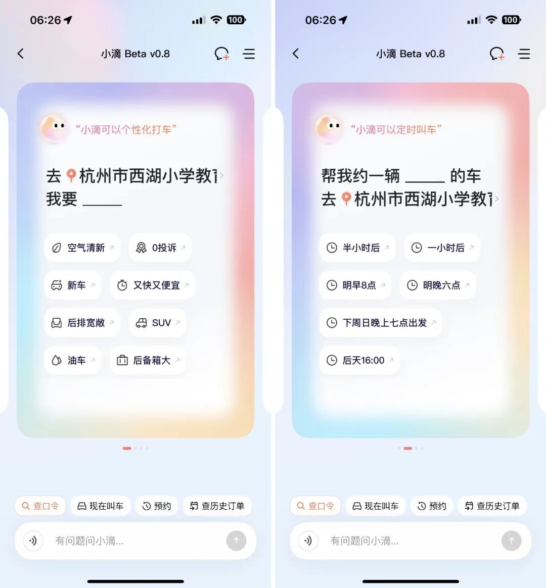 在 AI 小滴中,如果选择了打车方案,就能点「立即打车」,