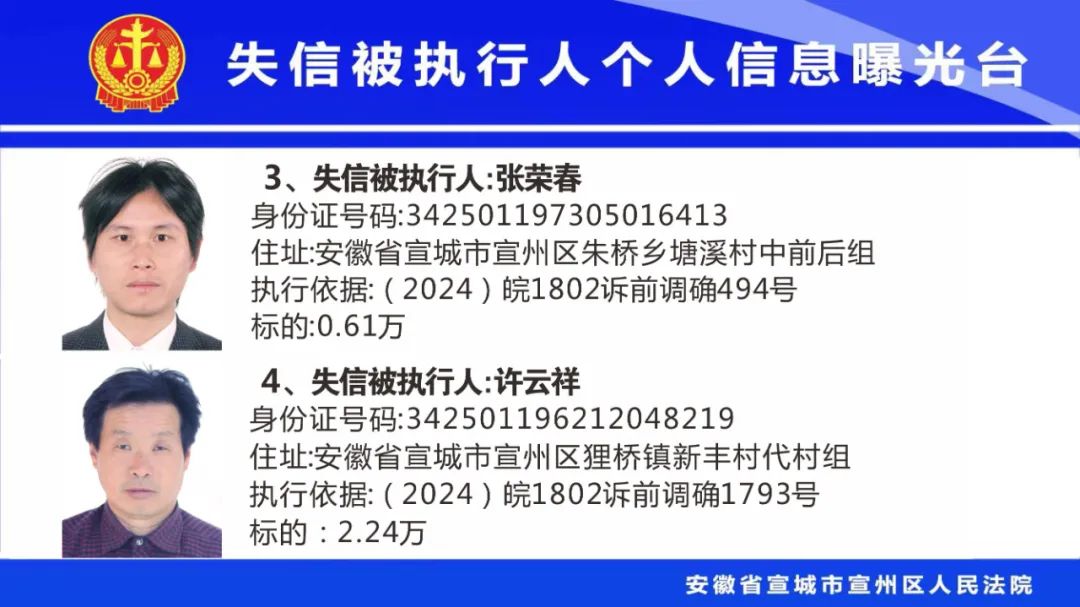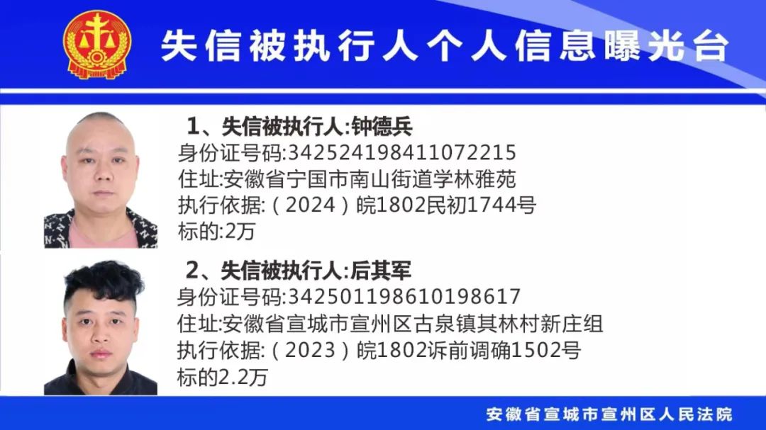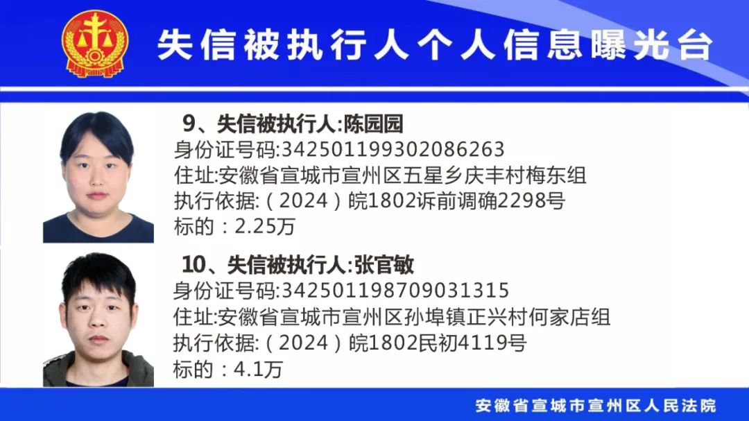 原标题:《【宣法·失信名单】| 我院公布(2025年度第一期)失信被执行人个人信息》