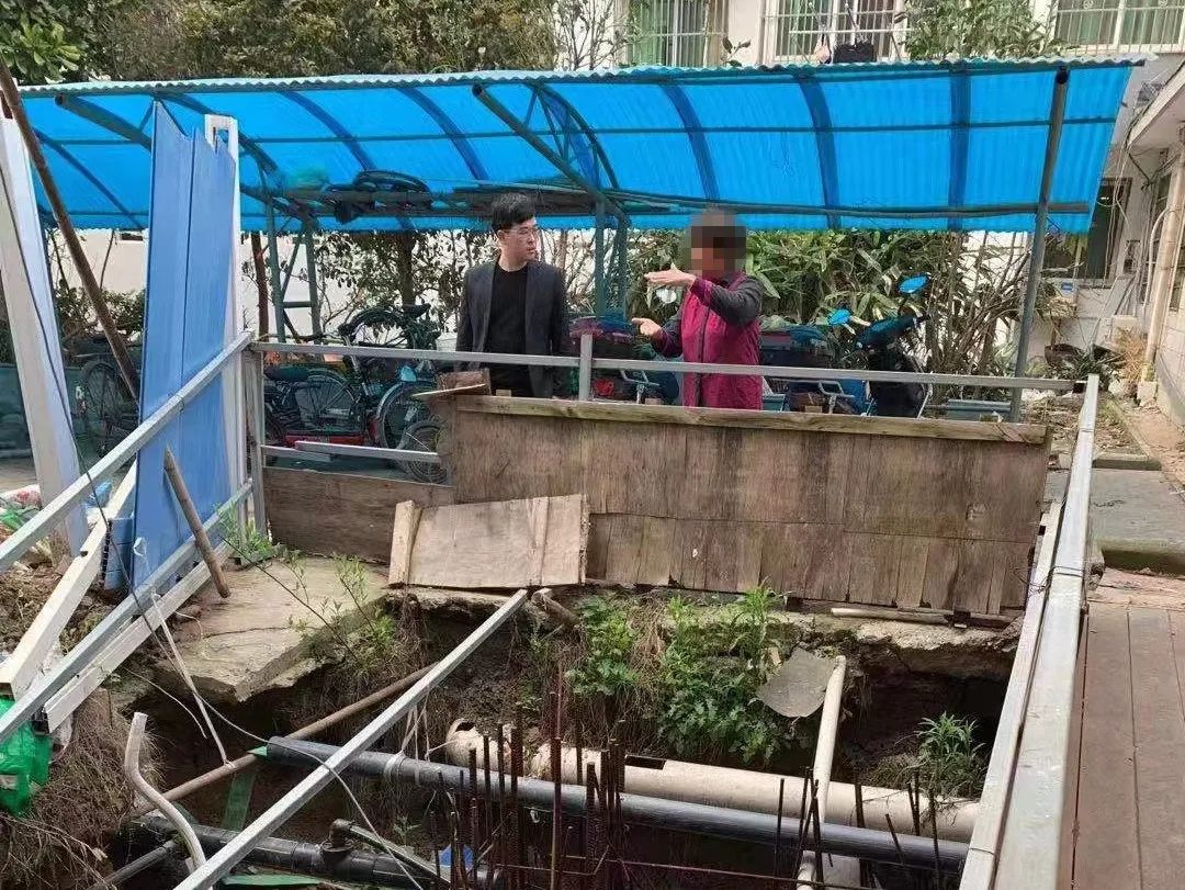 2021年2月,城桥镇西门路某居民楼业主来访上海市申江律师事务所。律所主任黄亚忠、律师马文杰接待了来访居民,并耐心听取了居民反映的事项及诉求。据居民反映,其所在居民楼启动电梯安装项目,经过了严格的审批流程后,2019年10月正式启动改造。然而在施工一段时间后,毗邻的底商业主突然表达出强烈的不满。经过多次沟通未果,电梯公司只能暂停施工。此时,水泥基础、开挖工程、钢筋工程已经基本完成,整个楼道口留下了巨大的洞口,经过风吹雨淋,积满了水,散发出剧烈的恶臭,甚至诱发鼠患,根本无法通行。居民无奈只能自己搭建桥梁,并定期抽出废水。在此期间居民尝试了各种办法,但问题始终未解决。