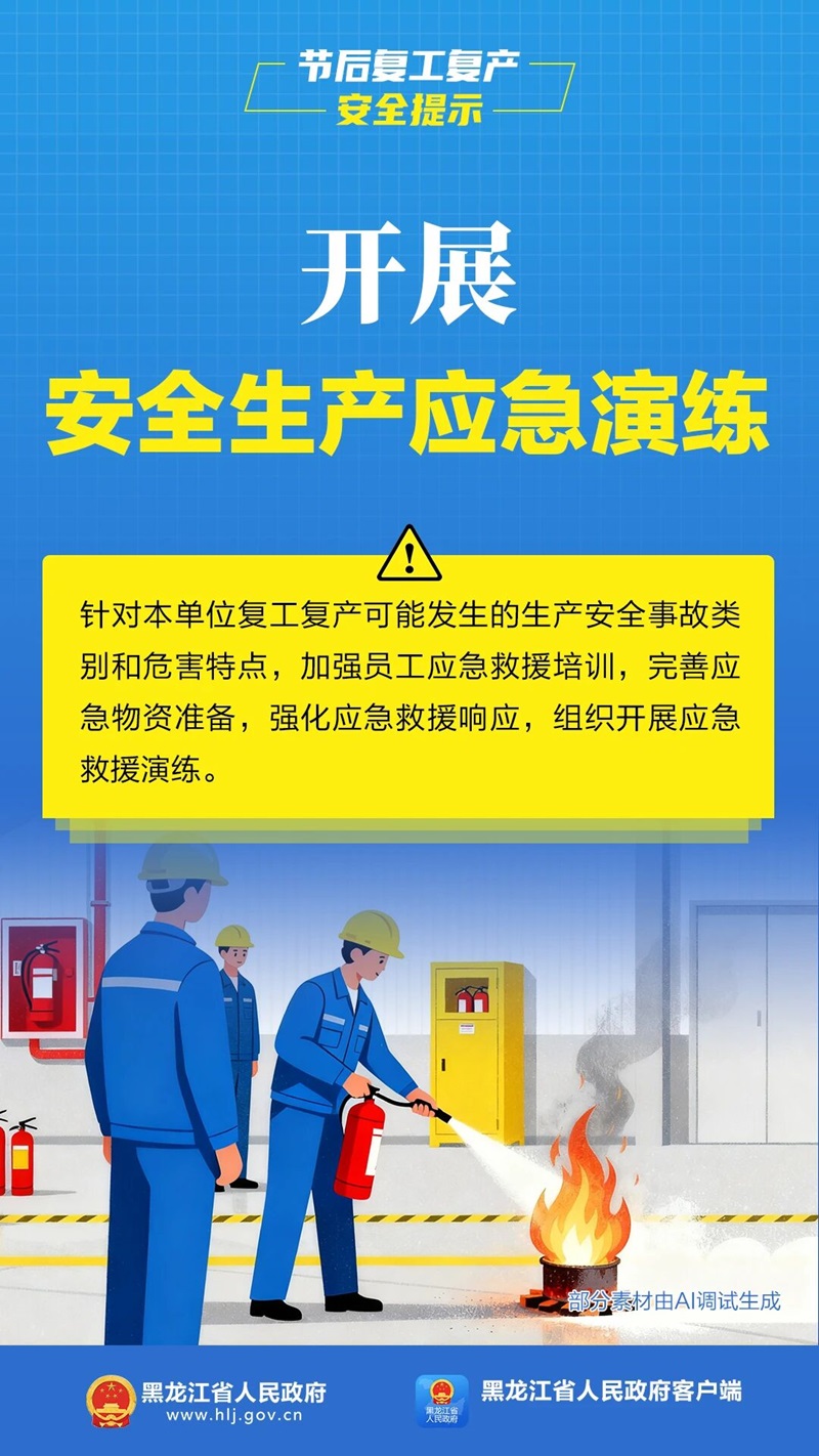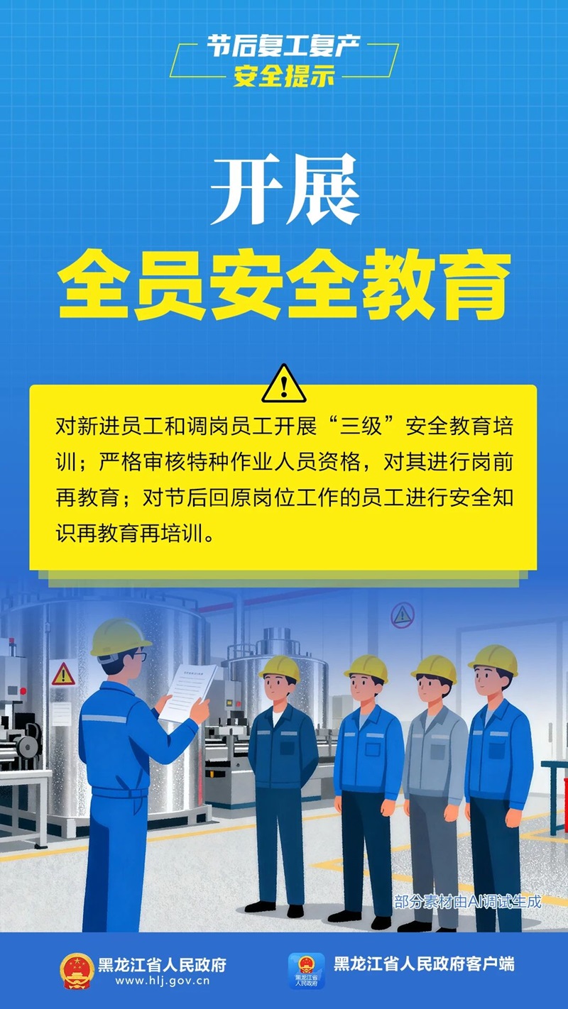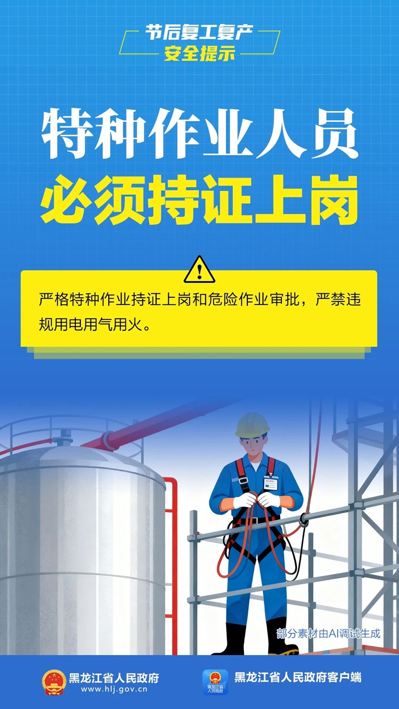 假期结束,各类生产经营单位恢复生产。复工复产阶段,是安全生产关键期、事故易发期。如何做到节后安全复工复产?这份安全提示请记牢!