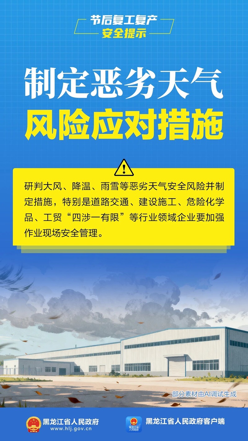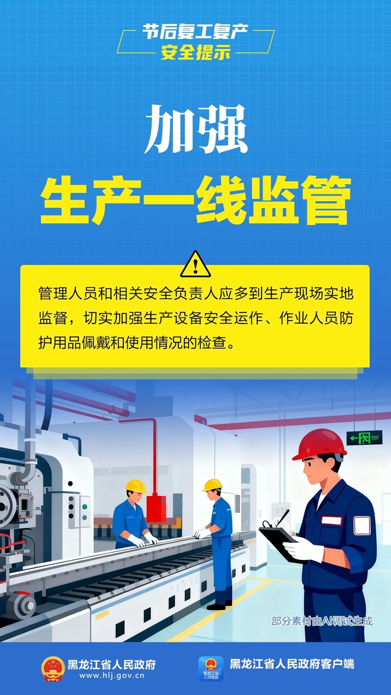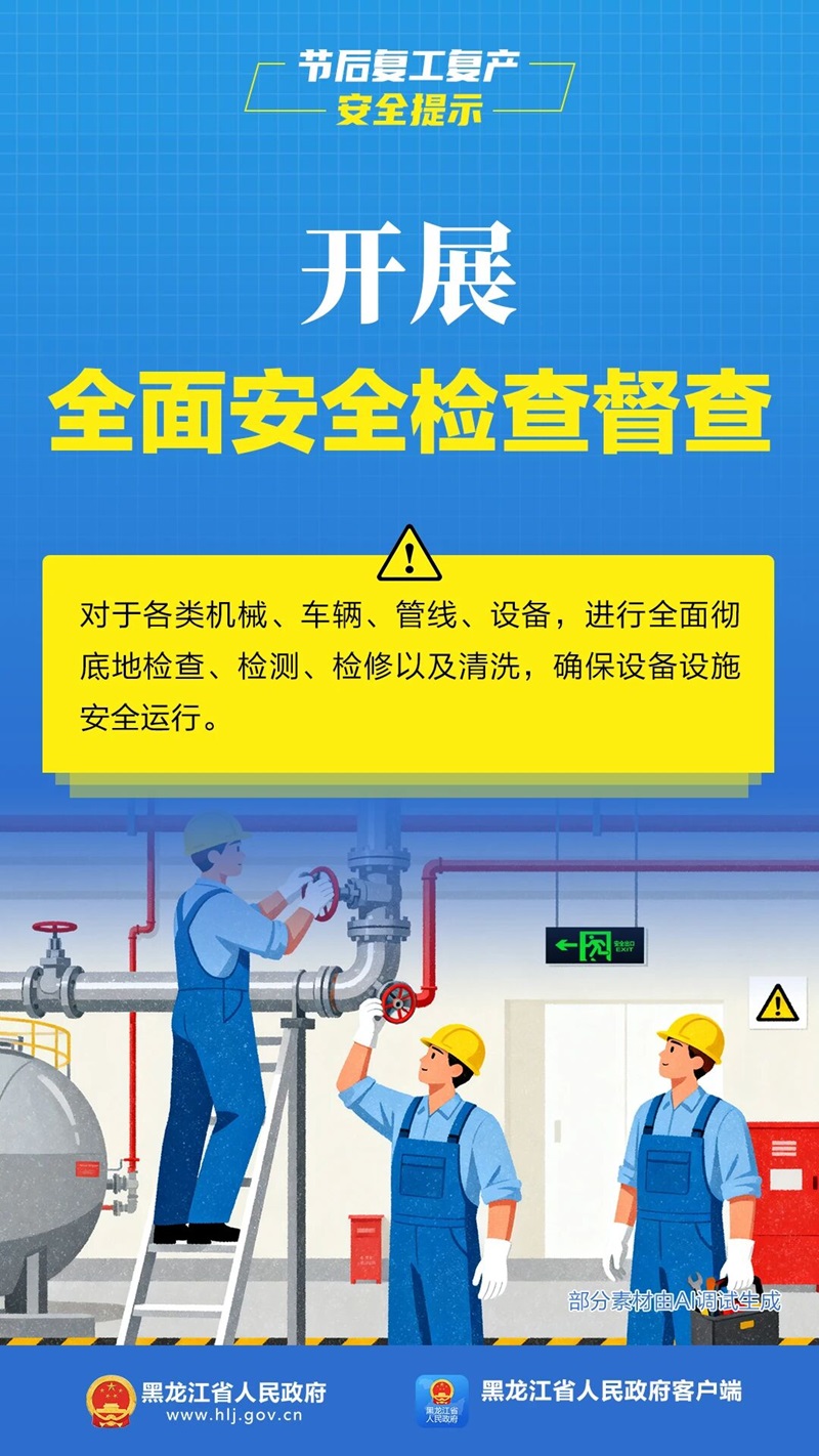 假期结束,各类生产经营单位恢复生产。复工复产阶段,是安全生产关键期、事故易发期。如何做到节后安全复工复产?这份安全提示请记牢!