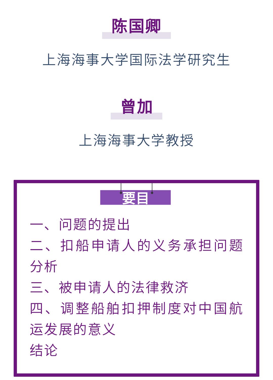 原标题:《陈国卿 曾加|我国船舶扣押制度法律问题研究——以申请人与被申请人的利益平衡为视角》