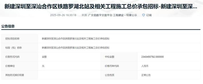 据中标公示显示,罗湖北站工程于9月30日开工建设,预计2027年11月30日竣工,投资额约23.43亿元。
