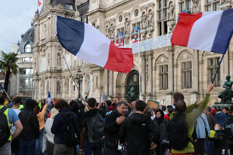在欧盟框架下,法国、意大利、丹麦等多国陆续推出本国版本的“健康通行证”或“绿色通行证”。然而,此类措施几乎无一例外地遭遇来自内部的强烈反弹声浪。除了部分医护人员认为以接种疫苗或阴性检测结果划线缺乏科学上的坚实基础之外,更多的批评者以“健康专制”、“扼杀自由”、“控制性社会”等理由群起而攻之。在法国,自7月17日第一次反“健康通行证”抗议示威以来,已经连续四周出现了较大规模的街头抗议,并且随着立法完成、相关措施即将付诸实施,动员人数和抗议烈度更有看涨势头。