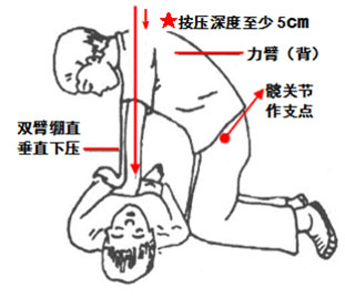 要点:一手掌根部放于按压部位,另一手掌根与之重叠,十指相扣,指尖抬起,不接触胸壁,肩肘腕关节与地面垂直。