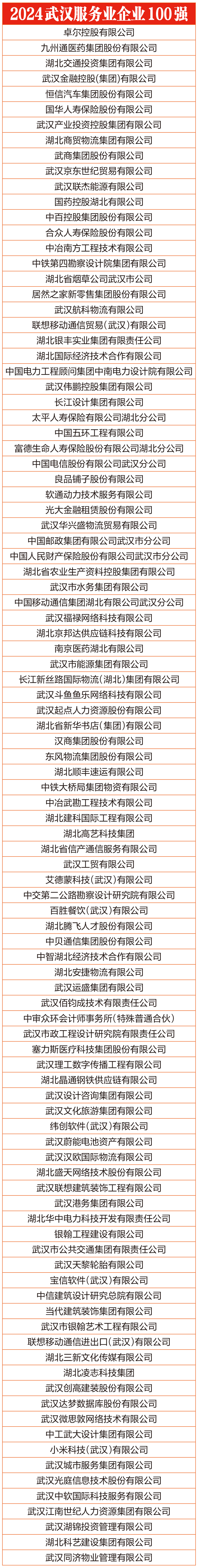 9月27日,《2024武汉企业100强、制造业企业100强、服务业企业100强分析报告》(以下简称《报告》)正式发布。其中,本届综合百强“千亿级”企业达到8家,比上届增加2家。