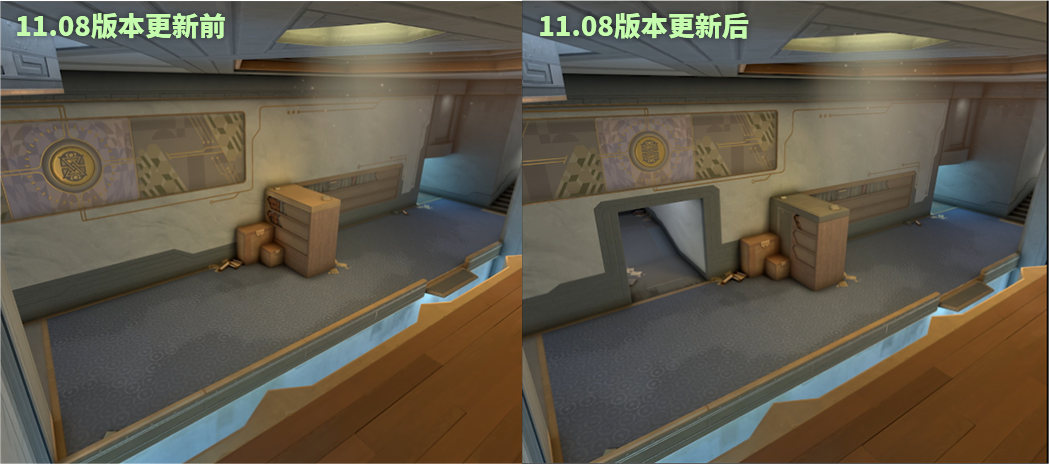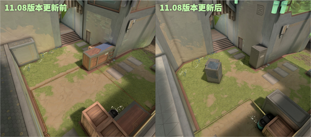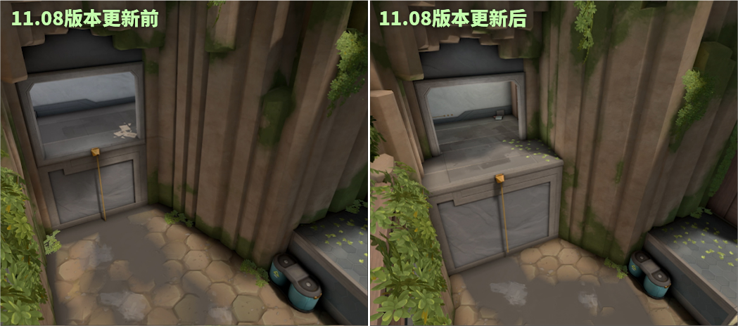 B区:移除了B区长廊的远距离射线视角 - 这个角度让英雄可以在安全距离下仍维持对部署区的强大控制力