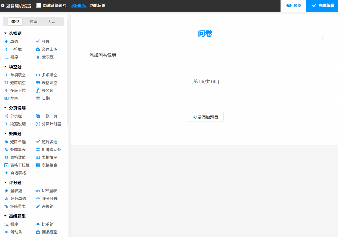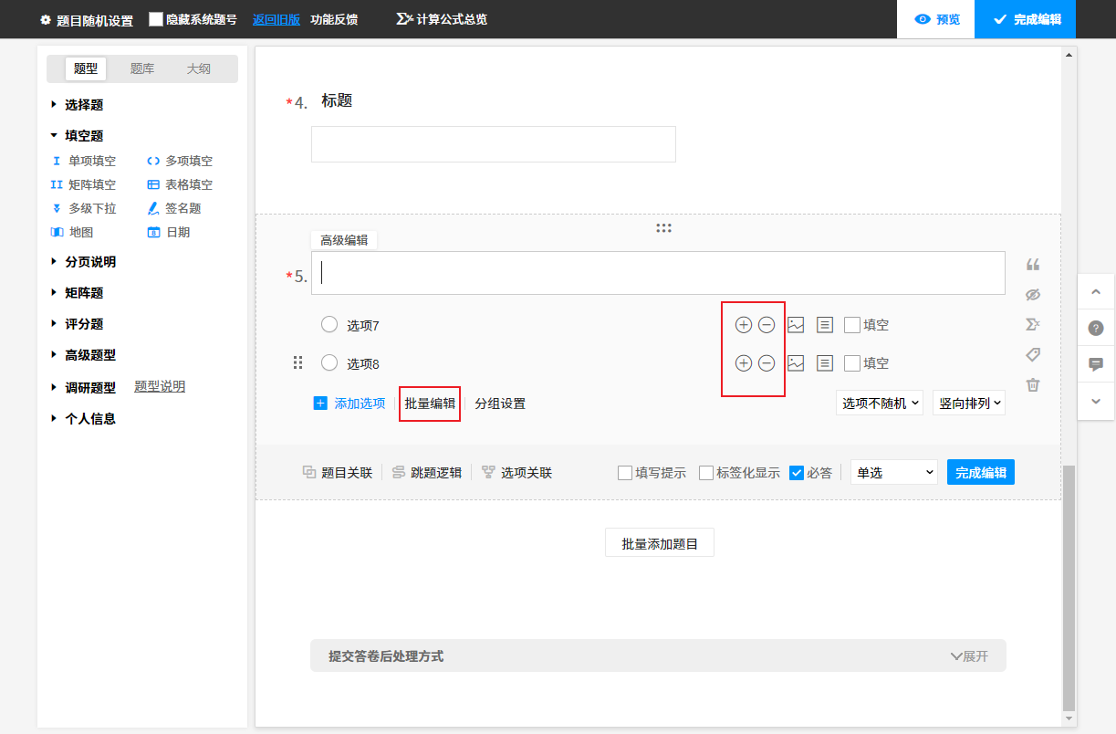 二、问卷编辑页基本操作