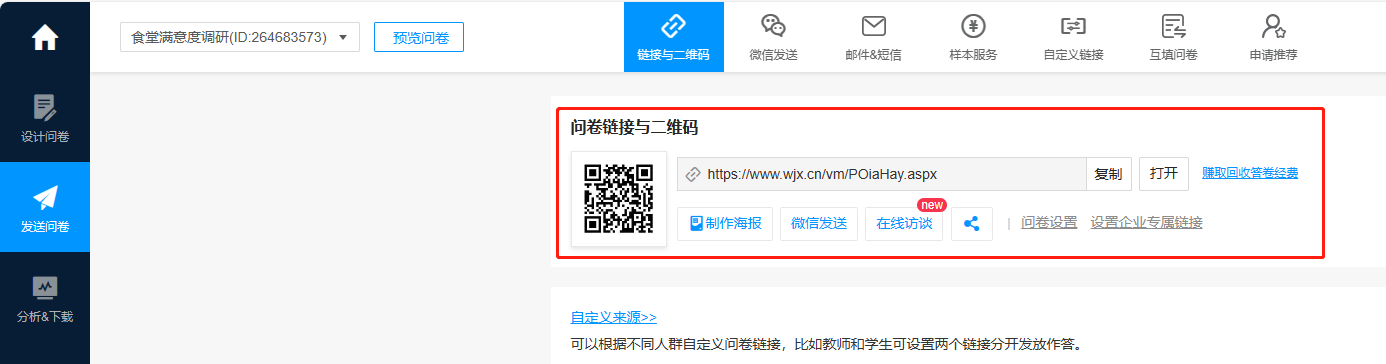 步骤四:发布之后生成问卷链接,将链接复制给填写者作答;