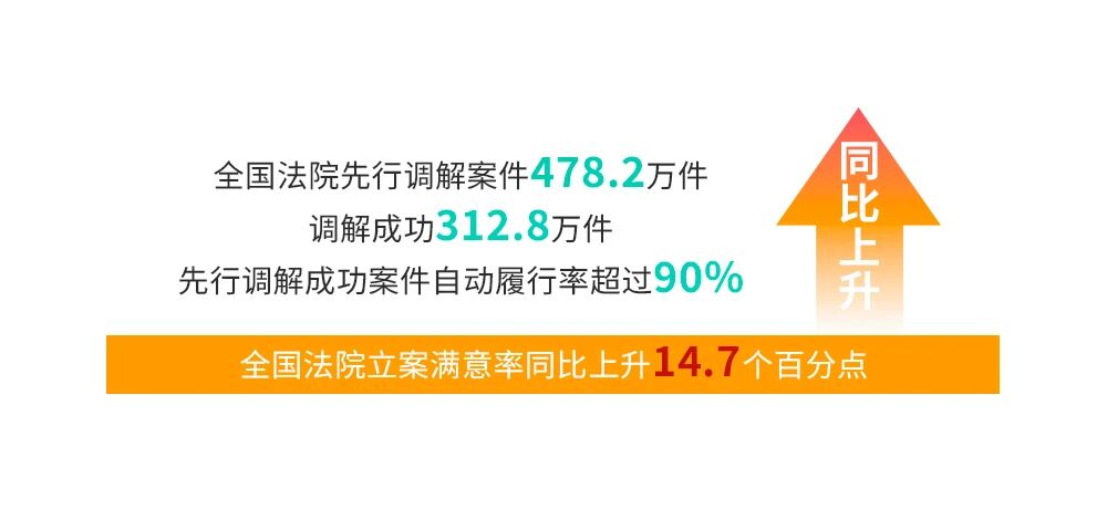 立案和先行调解情况。人民法院坚持“抓前端、治未病”,做深做实先行调解工作,促进矛盾纠纷源头预防、实质性化解。全国法院先行调解案件478.2万件,调解成功312.8万件,先行调解案件数量增长明显,先行调解成功案件自动履行率超过90%,前端解纷活力和效能持续释放。多元解纷机制持续深化,全国16个系统协同单位的调解组织在人民法院指导下调解案件68.2万件,其中依托人民法院调解平台自行调解45.3万件,第三季度环比增长23.44%。最高人民法院发布15个起诉状、答辩状示范文本应用典型案例,持续完善在线填写等智能辅助功能,更加便利人民群众诉讼,57%的当事人主动在线提交要素式起诉状118.6万件,人民群众对立案工作的满意度明显提升,立案满意率同比上升14.7个百分点。