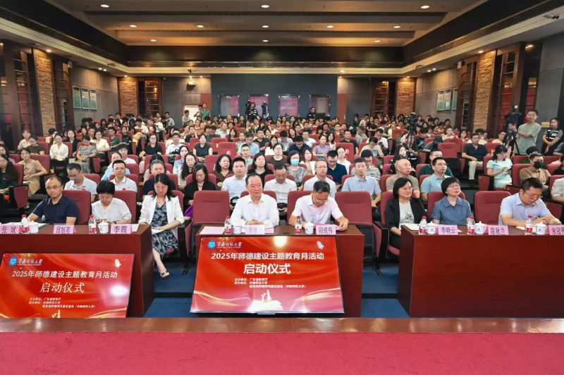 8月26日上午,广东省2025年师德建设主题教育月活动启动仪式在华南师范大学举行。今年是我省持续开展师德建设主题教育月活动的第十八年,今年主题为深入贯彻落实习近平总书记关于教育的重要论述,落实立德树人根本任务,坚持师德师风第一标准,进一步加强和改进新时代师德师风建设,大力提升教师职业道德素养,加快建设高素质专业化教师队伍。