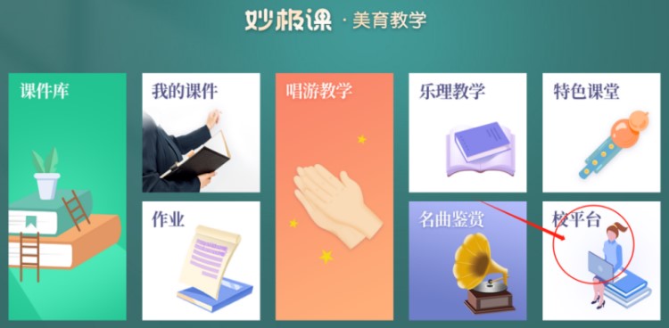 打开美育教学软件,登录之后,点击“校平台”,如下图所示。