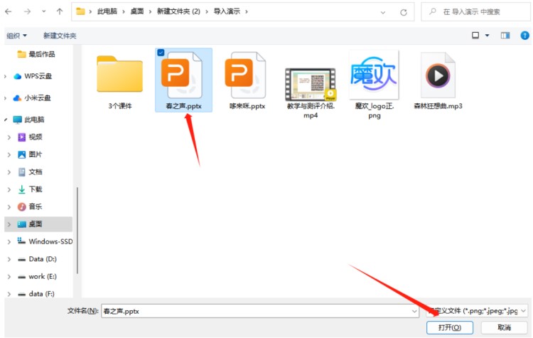 选择你的.pptx扩展名的课件,导入。