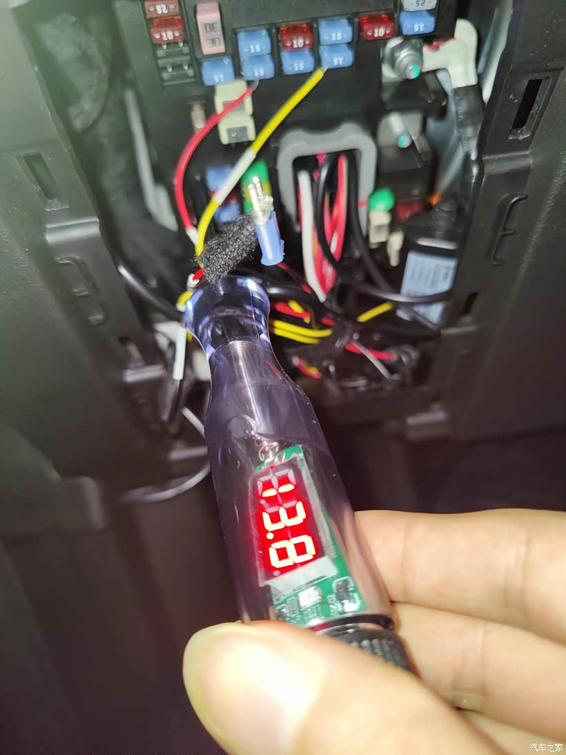 前记录仪是在线下安装的,虽是从保险盒接电,但没给我安成带24h停车监控(当时我问那师傅,记录仪能关闭24h停车监控功能不,减少对小电瓶消耗,他说不能,接线就接成车启动才录像)。其实记录仪都是能控制关闭24h停车监控的,于是我自己又购入了车用测电笔,进行改装让它支持24h停车监控功能