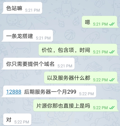 一位网站搭建服务商称,提供色情网站搭建并提供片源,网站可在1小时内搭建完成。