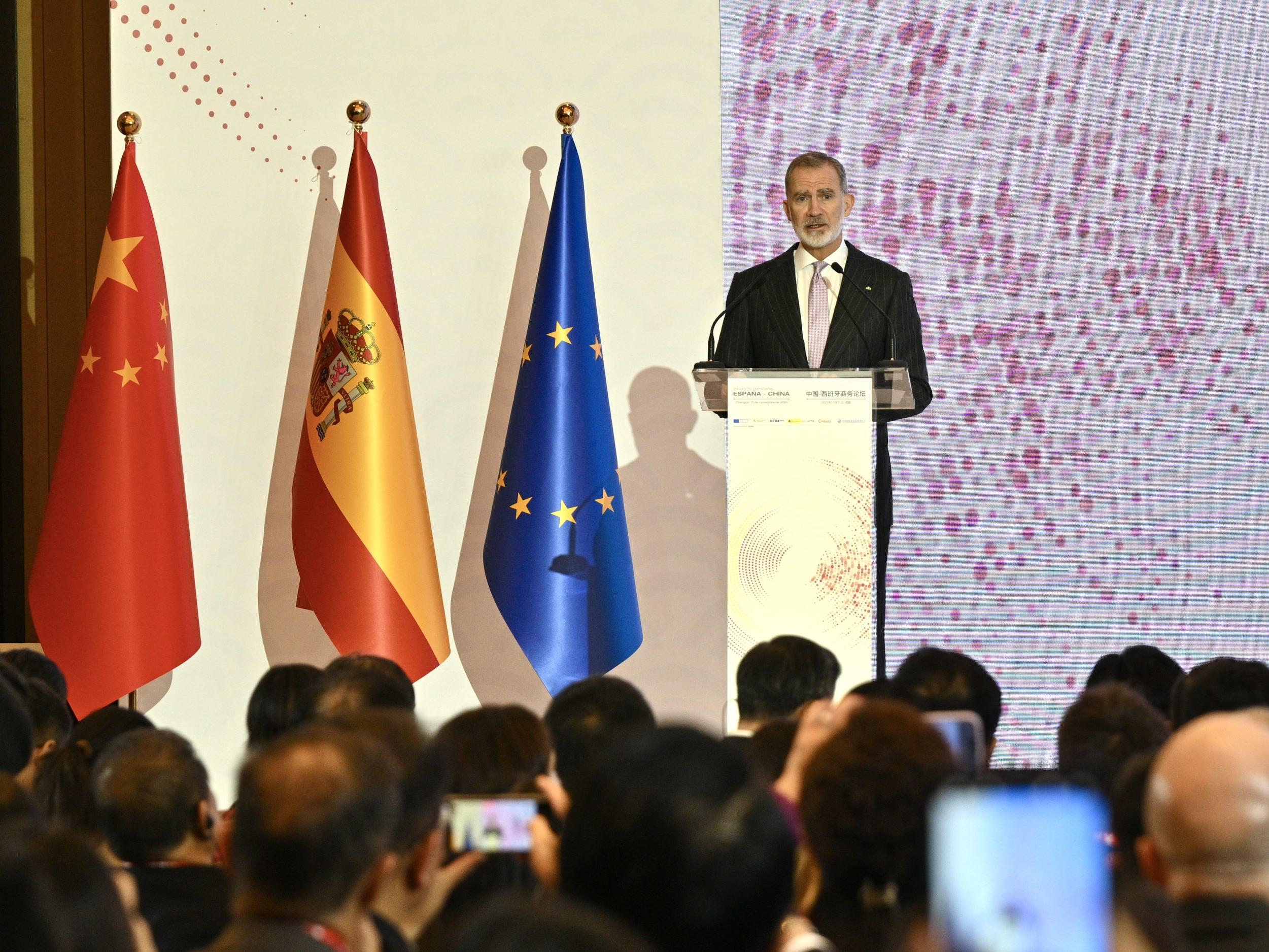 西班牙国王费利佩六世访华首站抵达成都 出席“中国—西班牙商务论坛”开幕式