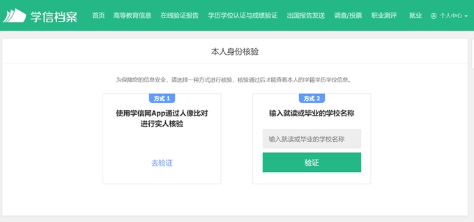 步:使用本人学信网账号密码登录,登录成功后进行身份验证。