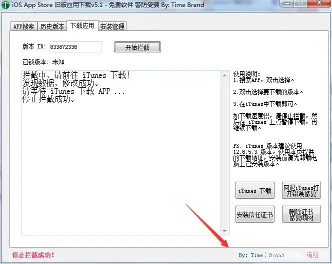 如果你无法搜索历史版本,并且下载安装包为 260MB,那怎么办呢?我们点击右下角进入作者说明,里面会告知无法搜索历史版本的应对方法,也就是手动选取版本 ID,我们按照下图所示操作即可。注:COC 13.0.1 版本的 ID 是 833872336.