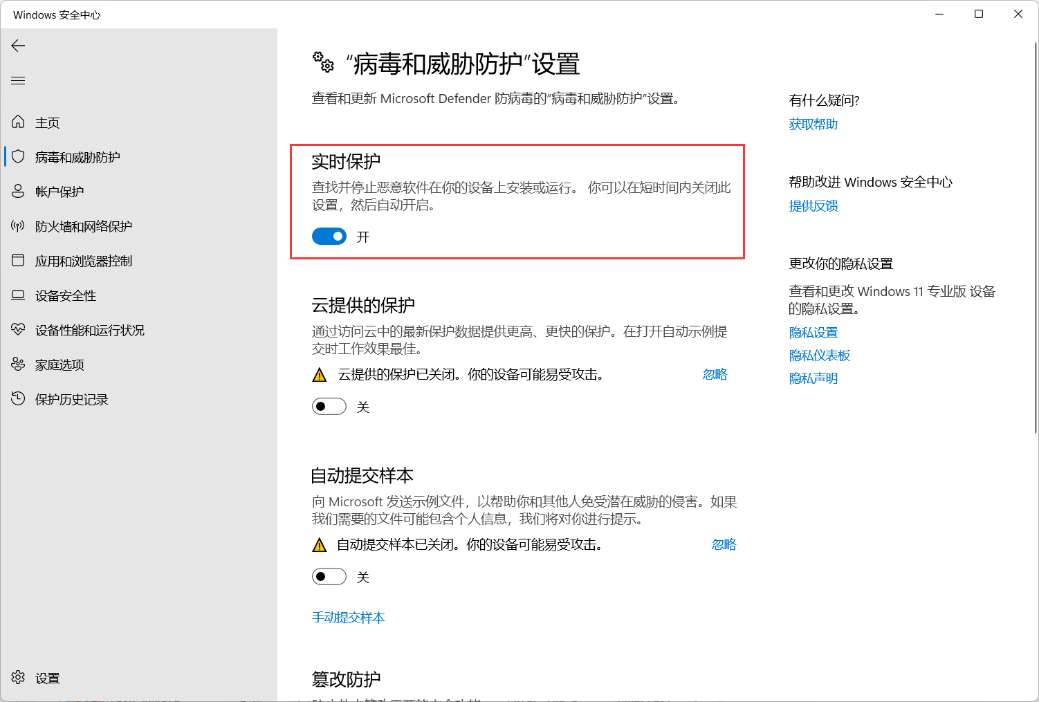 如何对付杀毒软件如果打开压缩文件后文件被删了,请关闭杀毒软件。如果你电脑里没有安装杀毒软件,只有自带的 Windows Defener(Windows 安全中心),那么请关闭“实时保护”。