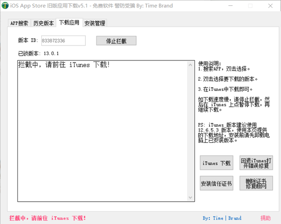 历史版本选择 13.0.1,双击后出现这个界面就代表拦截成功了。