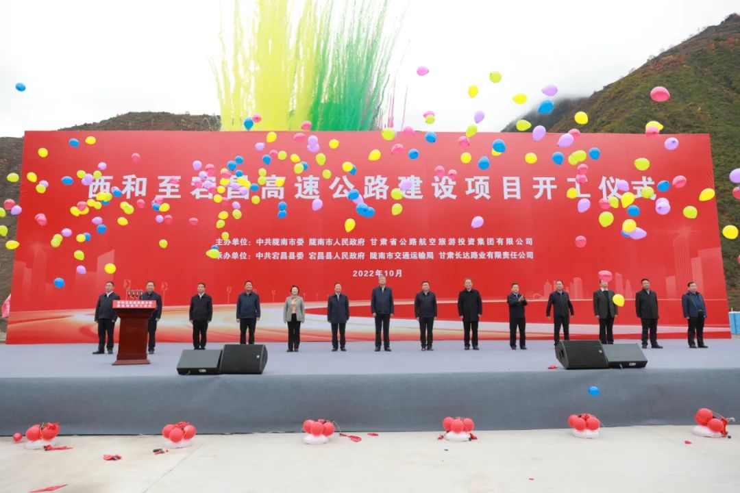 开工仪式西和至宕昌高速公路建设项目是甘肃省“十四五”综合交通运输发展规划重大项目,起点位于西和县石峡镇,以枢纽立交与G7011十天高速公路相接,途经八峰崖、青岗岭、大桥、嵩林、雷坝、滩坪、白河、韩院、南阳,终点位于宕昌县临江铺白杨坝村,以枢纽立交与G75兰海高速相接,线路全长100.494公里,概算总投资189.799亿元,建设工期4年,运营期30年。