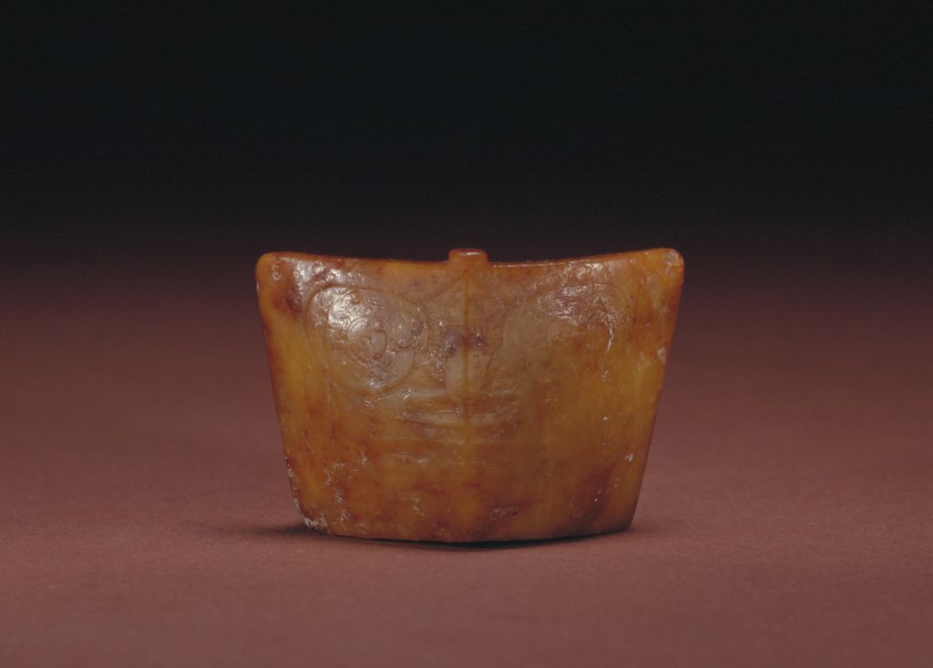 据分析,作品原系嵌于柱形器的角部,3件或4件为一组,这样的柱形器可能是玉琮之类的器物。