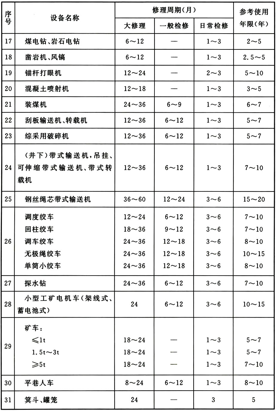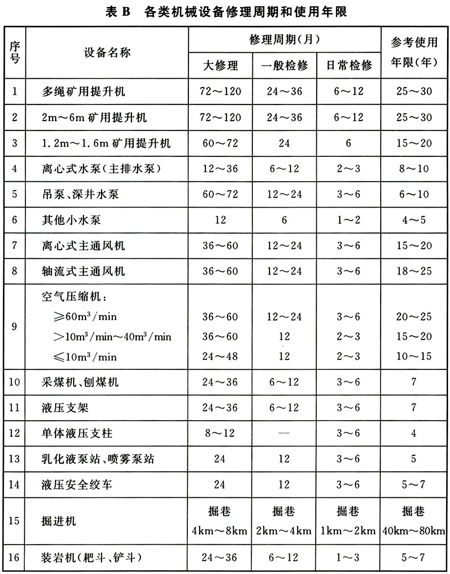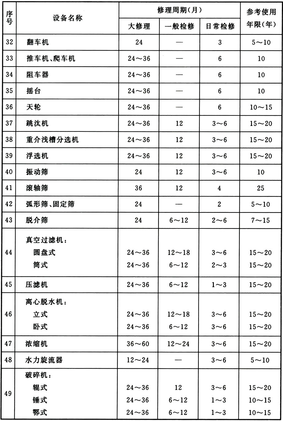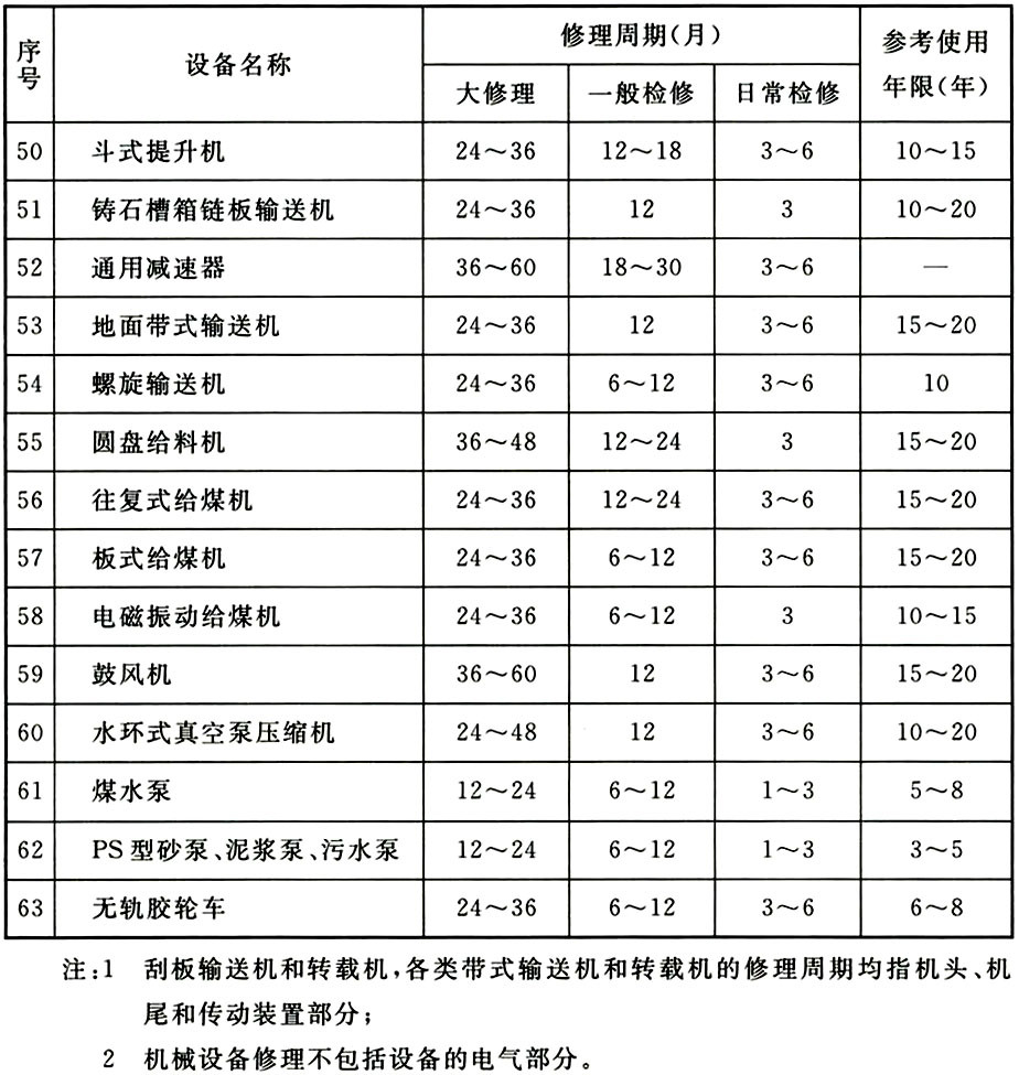 2机械设备的修理周期和使用年限宜按本标准附录B执行;