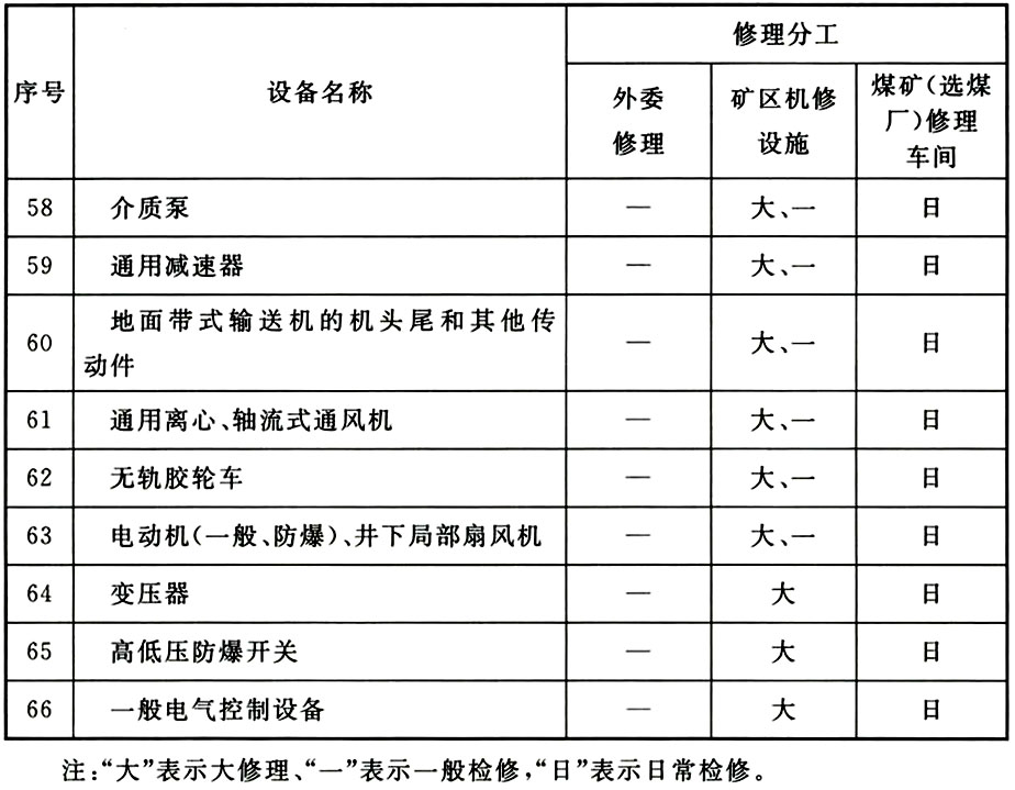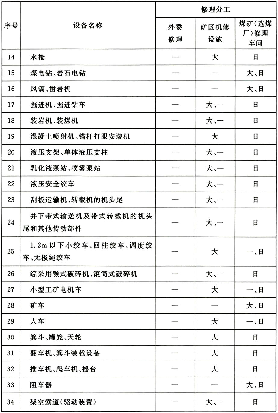 3.1.2矿区机电设备修理设施各车间职能范围应符合下列规定: