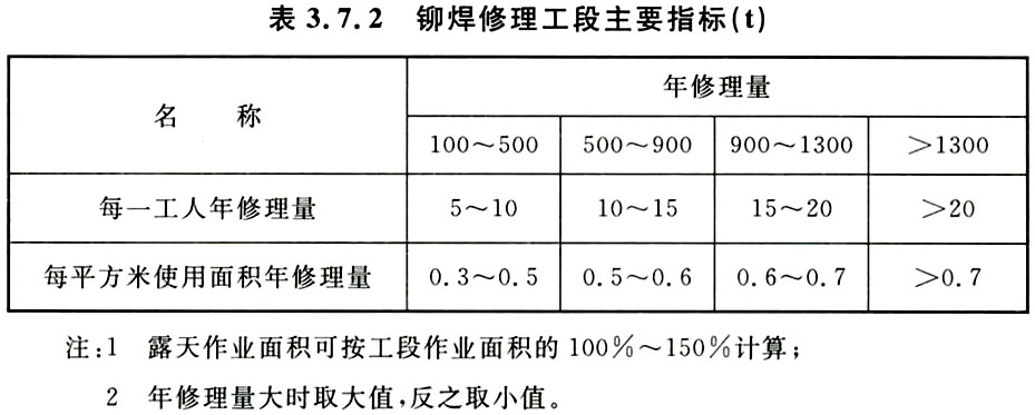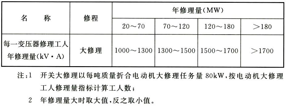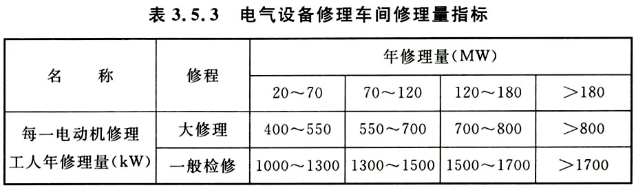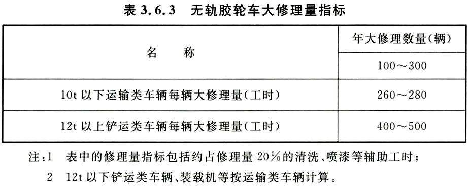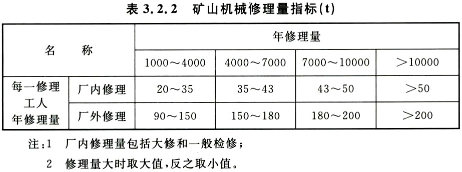 修理工人的修理量指标不宜低于表3.2.2的规定。