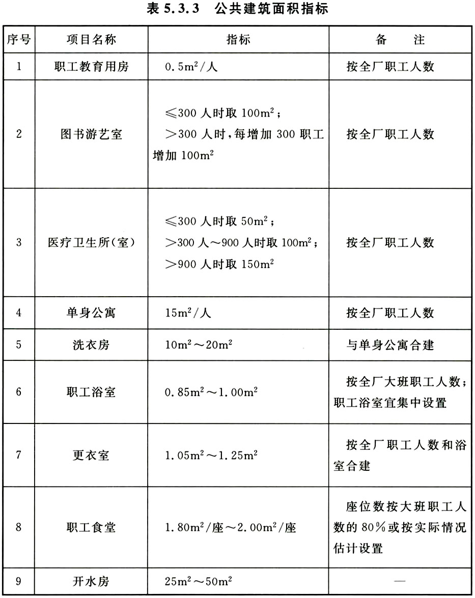 5.3.3职工食堂指标参考现行国家标准《煤炭工业矿井设计规范》GB50215-2015制定,建筑面积指标为每位1.8m2~2.0m2,“职工食堂座位数按全厂大班职工人数的80%”是这样来的:其中出勤率系数0.91,职工就餐人员系数0.80,外来人员备用系数1.10,则0.91×0.80×1.10=0.80。