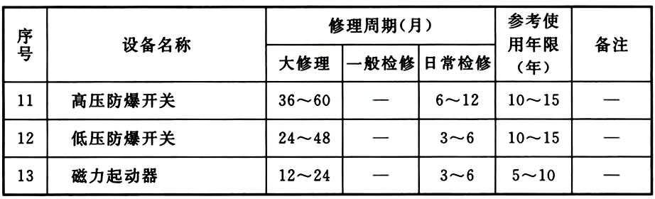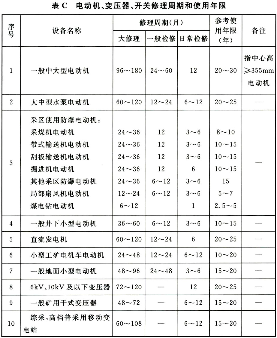 3电气设备的修理周期和使用年限宜按本标准附录C执行;
