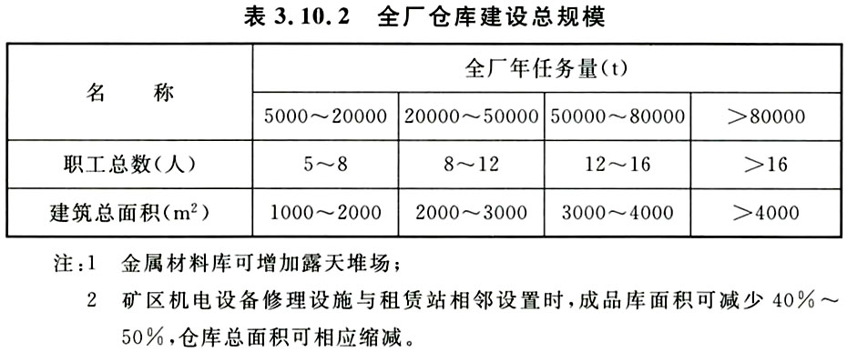 2.总图运输:增加了厂区防洪设计要求,增加了矿区机电设备修理设施用地面积应执行的规定;